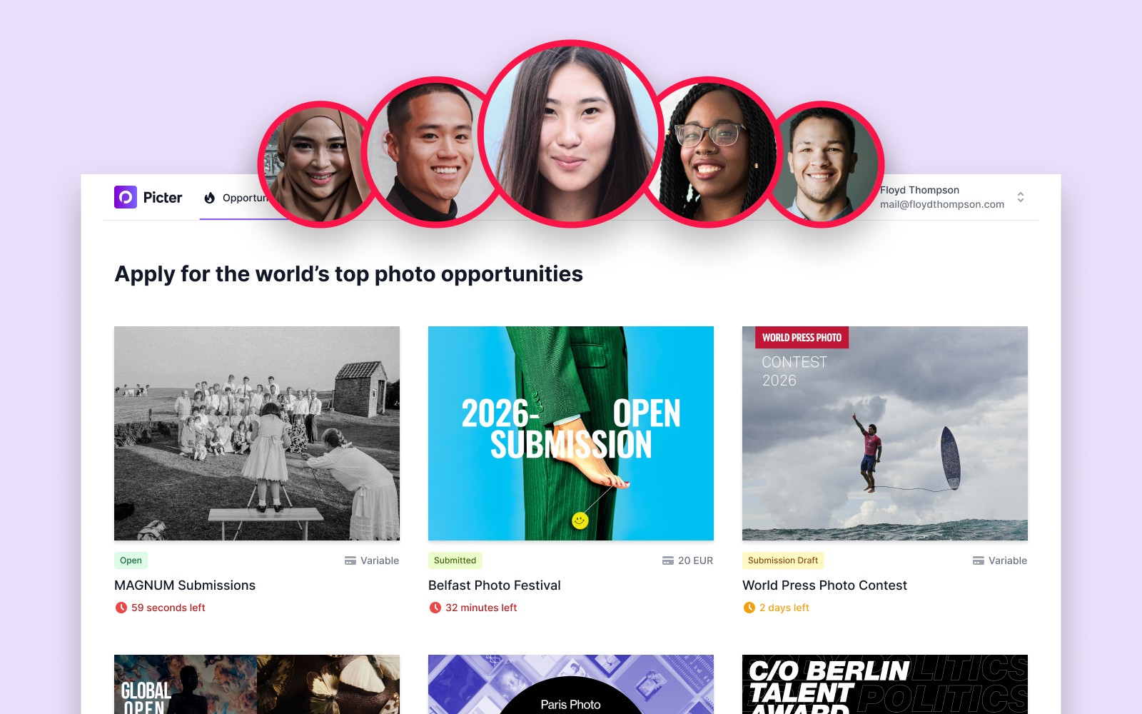 Whether you're launching an open call, planning media placements, or activating photographers for your brand, we'll show you how Picter works in 20 minutes.